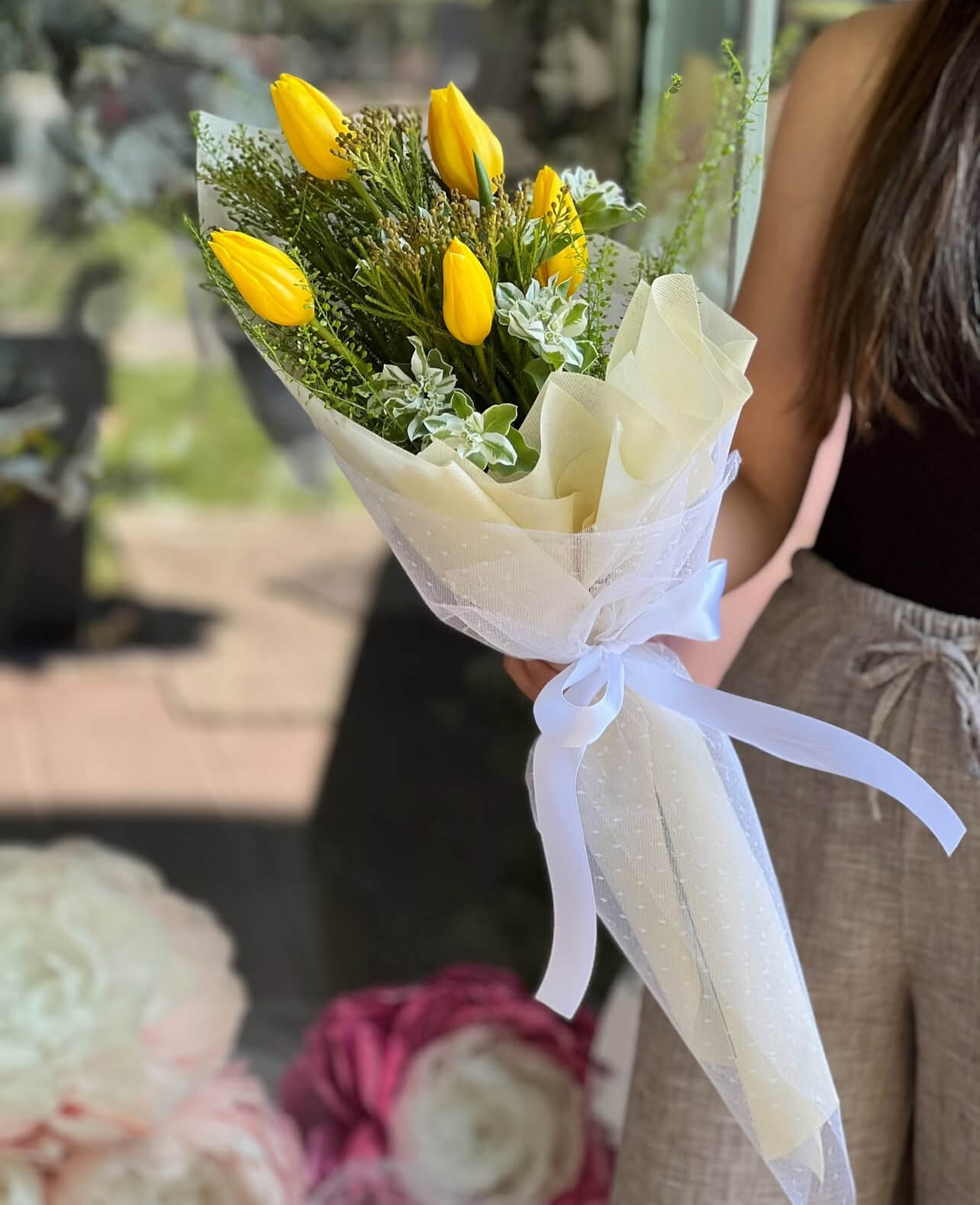 Da, mogu, ali lale su same po sebi toliko upečatljive da u buketu bez dodataka deluju najelegantnije. U kombinaciji sa drugim cvećem često izgube onu svoju posebnu jednostavnost.